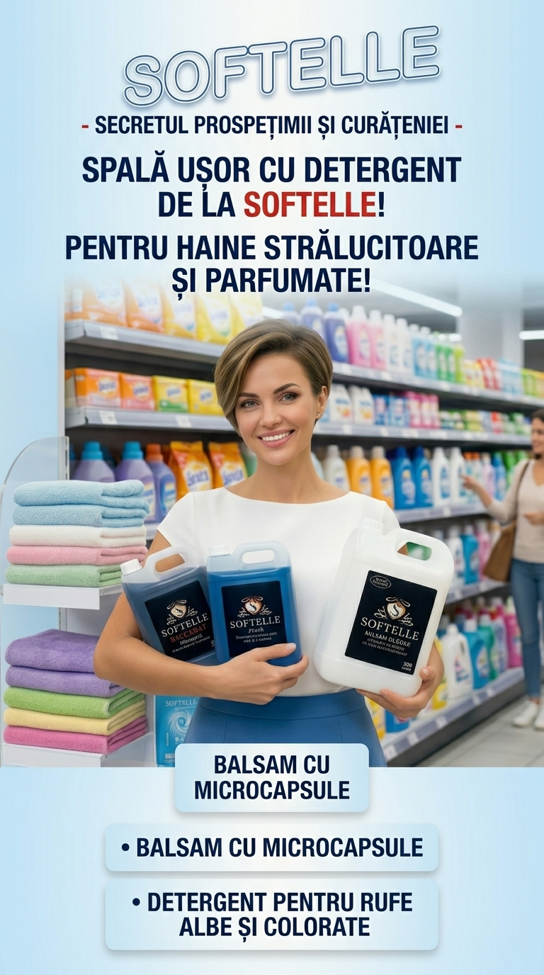 Cumpara acum detergent lichid de la Softelle pentru rufe curate si parfumate.